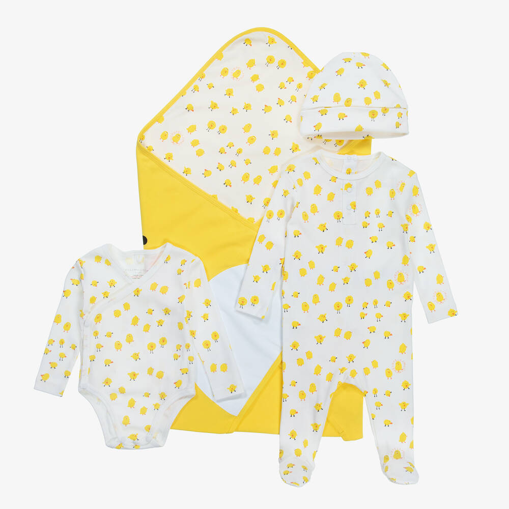 Ivory Chick Print Organic Cotton Babysuit Gift Set