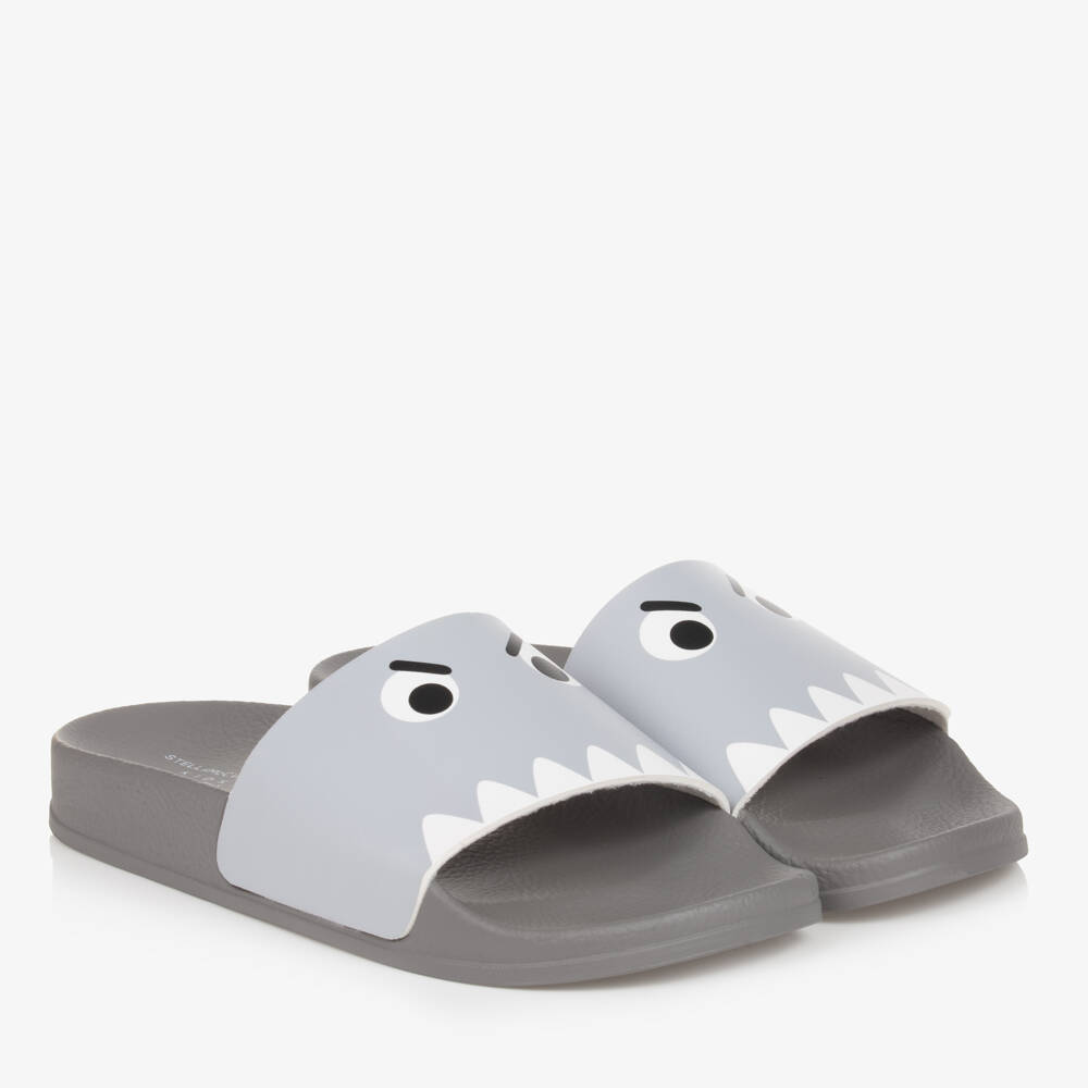 Stella McCartney Kids design these fun grey sliders for teen boys. Ideal for channelling a playful, graphic look at the resort, pool or beach, these easy slip on shoes have a moulded insole for unmatched comfort and are ideal for casual wear.