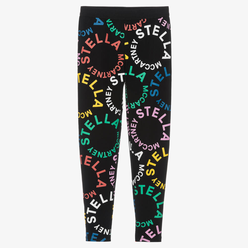 Cool black full-length leggings for teen girls from Stella McCartney Kids, with a bold and bright logo design. Fun to wear, they are patterned in a multicoloured circular logo print, for a creative designer look. The elasticated waistband gives a comfortable finish. The Stella McCartney fit can be quite small so choose a size up if you want room to grow.