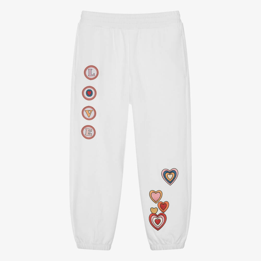 Teen Girls White Cotton Hearts Joggers