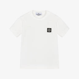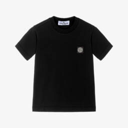 Black T-shirt for boys by Stone Island Junior, made in soft cotton jersey for comfortable wear. In a classic crew neck style, this casual top has the brand's signature Compass logo patch on the chest.