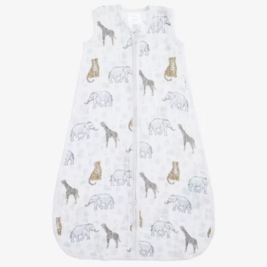 Tog ratings simply describe the thermal insulation of bedding. Just as we choose a different duvet for different seasons as adults, lots of baby sleeping bags come in range of tog ratings, generally between 0.2 and 3.5. The higher the rating, the warmer the sleeping bag will be, so you can make an informed decision based on the climate you live in and your baby’s sleeping environment. Plus, it’s a great excuse to have multiple styles of these beautiful essentials to keep them snug as a bug in winter and cool as a cucumber through the summer months. As cosy as it may look, it’s important to make sure that their sleeping bag isn't too thick throughout the warmer weather, as babies can overheat easily.