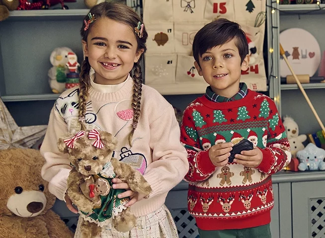 With your shopping bag overflowing with outfits and gifts, a trip to the Childrensalon Christmas Village wouldn’t be complete without visiting our Festive Emporium. As if transported straight to Santa’s workshop, you’ll be greeted with all things fun and fabulously festive as soon as you step through the door, from stockings and matching pyjama sets to reindeer-themed hair accessories. And for all those merry moments in between the dressy festivities, be sure to browse our collection of jolly Christmas jumpers and tops. Little traditionalists will love our classic Fair Isle knits from the likes of Hatley and Ralph Lauren, and if they like to be the brightest bauble on the tree, then look to the colourful designs from Rock Your Baby, Billieblush and NAME IT.
