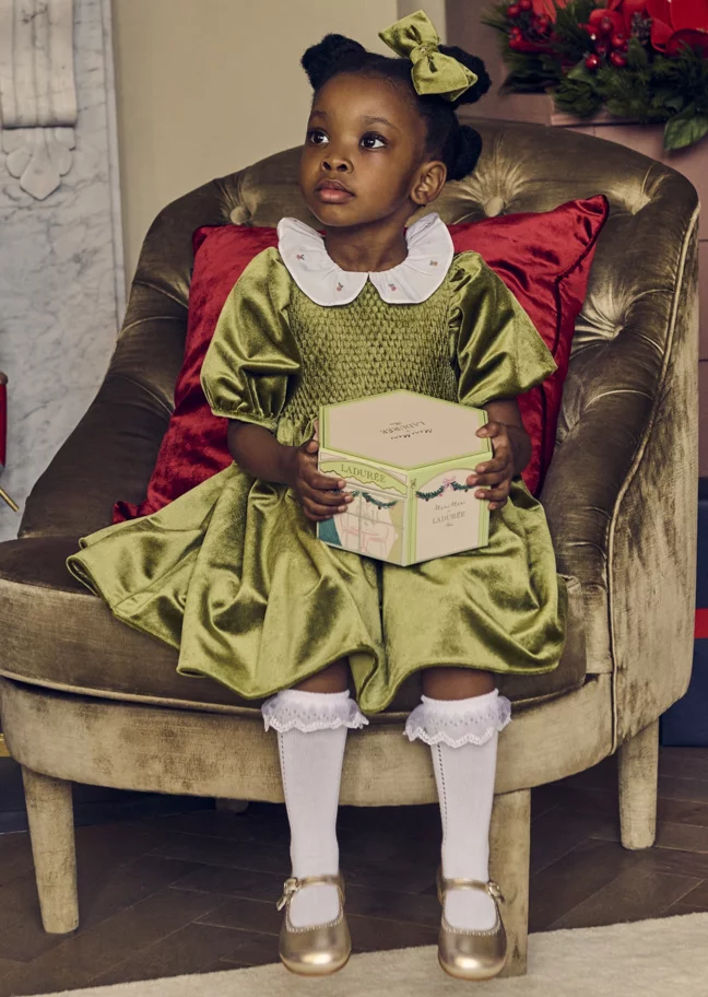 Pretty smocking and a festive colour palette of red, greens, golds set the scene for a very merry Christmas.