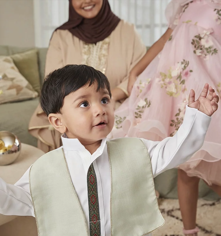 From stylish outfit sets and smart shoes to comfy separates, our Eid collections are designed with the most special details that will have him feeling his very best for the joyous occasion.