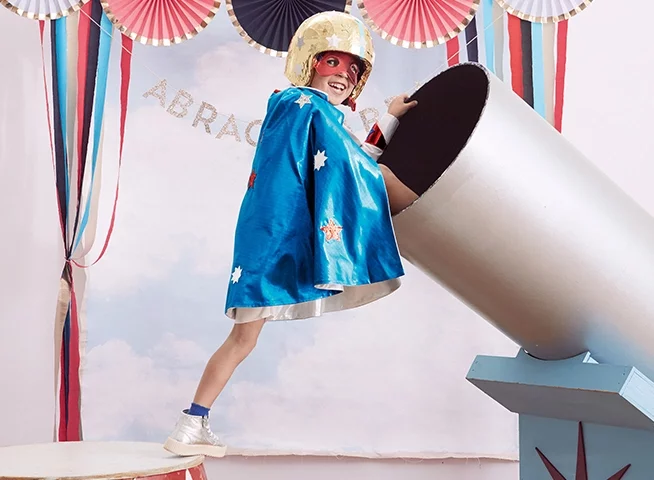 Calling all superheroes and space explorers! If the party plans are out of this world, then our collection of kids' costumes has the perfect look for celebrations of the celestial kind. We love Meri Meri's superhero sets for kids, which come complete with a cape, a star-spangled mask and matching cuffs. And for budding astronauts, Souza's intergalactic suit is made for their next space mission. To infinity and beyond!