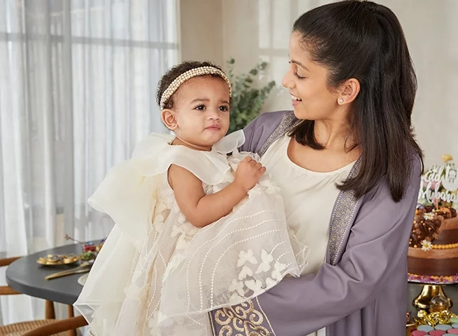 What could make an occasion as special as Eid even more memorable? If you’re welcoming a new arrival into the family, then we’re here to help make their first Eid one to remember. Our beautiful baby collections are lovingly designed for those precious first moments, from the softest babygrows and accessories for tummy time at home to little occasion outfits, perfect for their introduction to the rest of the family — cue the cuddles! “This year’s Eid offering for babies is cuter than ever before,” says Dina. “Our designers have thought of everything! Much-loved brand Kissy Kissy’s range of baby clothing and accessories is made from the softest Pima cotton, and there are lots of matching pieces, like babygrows, nests, blankets and hats.” And if you’re looking for a gift for the little one, then our personalised gift hampers are sure to delight, filled with blankets, toys and baby sets that can be embroidered with their name.