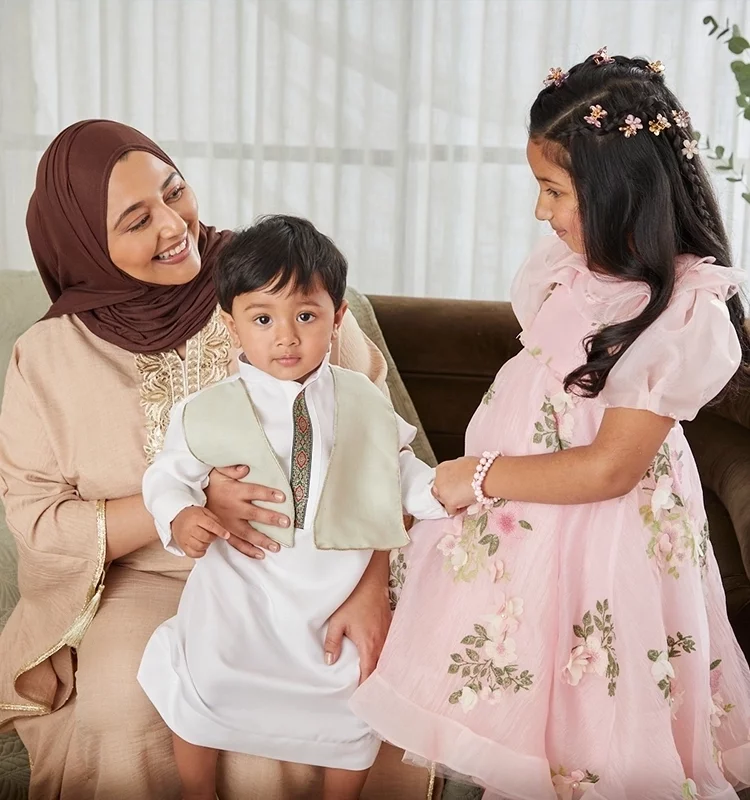 The lead up to Eid is a special time for children. Counting down the days to seeing friends and family, a beautiful outfit hung in wait for the big day, the anticipation of spotting the new moon in the night sky. And sparkling at the centre of it all: your stars of Eid. Every piece in our Eid collection has been thoughtfully hand-picked to celebrate the individuality and joy of each child. From the fabrics and silhouettes, chosen for comfort and freedom of movement, to the intricate little details, you can trust in us to deliver the very best quality and design for your child’s starring moment.