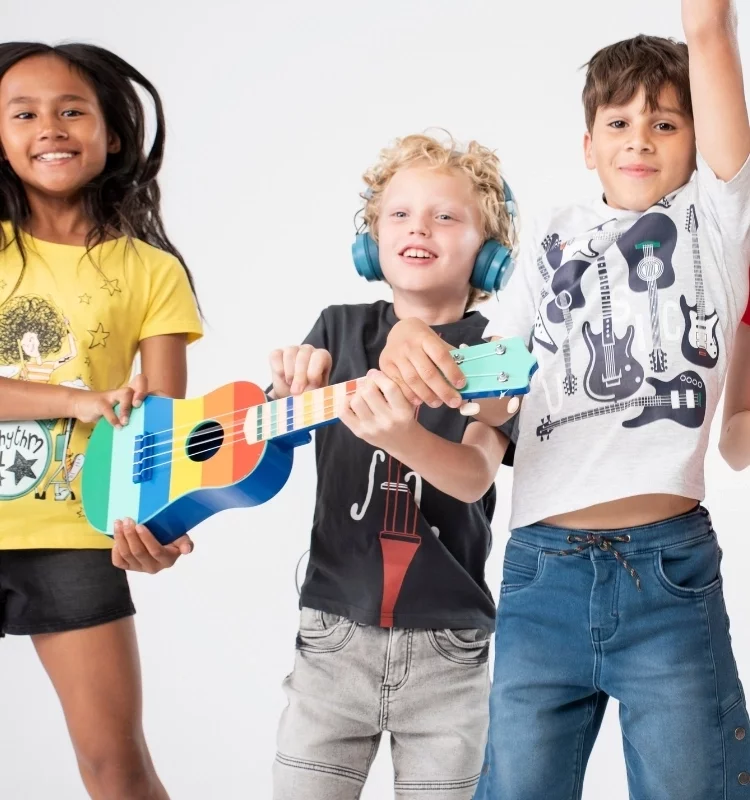 Perhaps you’ll find them singing their favourite pop song in the mirror — with their hairbrush microphone — or maybe they feel more at home tapping their toes to a country jam. Of course, every soon-to-be superstar needs an outfit to match their sound. We’ve got looks (and instruments) that’ll take the number one spot in their wardrobe.