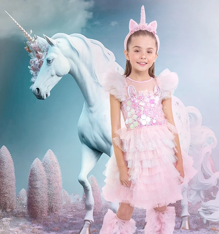 Find the perfect partywear for their big moment, including sparkles, cute unicorn motifs, rainbow pom-poms and layers of twirl-worthy tulle.