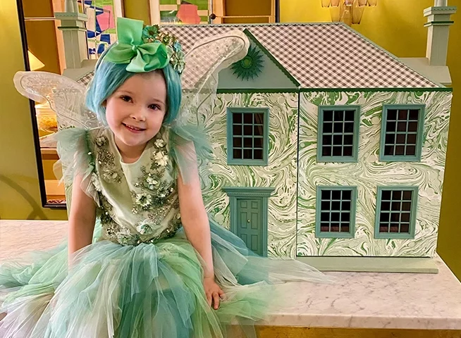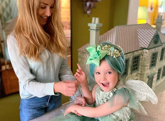 “She recently announced that she would like to dress up as Elton John (she’s a big fan). We also have plans for a queen of the pirates costume. But this Halloween, she set her sights on this beautiful Tutu du Monde tulle dress with shimmering wings, transforming her into a mystical forest fairy. We’ve added a cute blue wig and this beautiful green crown from Bunny's own dressing-up box to complete the look. She loves twirling around in it! And it coordinates with my latest dolls' house creation perfectly too — a magical hideaway for a little fairy when she shrinks back down to size!”