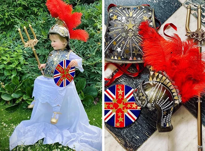 I also adore extreme examples of fancy dress, like the Devonshire House Ball of 1897, hosted by the Duke and Duchess of Devonshire to celebrate the Diamond Jubilee of Queen Victoria, where the theme was interpreted by couturiers like Charles Frederick Worth. The level of detail and craftsmanship in the costumes is breathtaking and inspiring. I recreated Lady Wolverton’s Britannia costume for Bunny for the Jubilee, with a lot less craftsmanship, obviously, but I like taking inspiration from the past and interpreting iconic costumes in a modern context."
