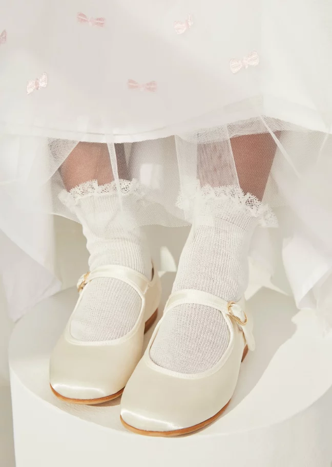 A little sparkle here, a ballerina bow there, our girls’ bridesmaid shoes will have her walking on cloud nine.