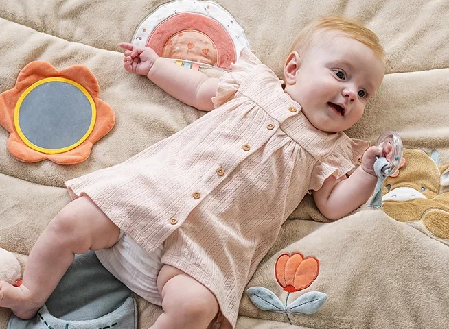 When your beautiful bundle of joy arrives, they will see the world as a bit of a blur. However, as they begin to focus on close objects, their colour vision develops, and depth perception comes into play. And what better time to introduce interactive toys to their daily routine? Our collection of fabric books, playmats and toys is a great choice for early-days development. These clever designs not only provide a welcome distraction, but the high-contrast patterns are also created to help support the development of your baby’s vision.