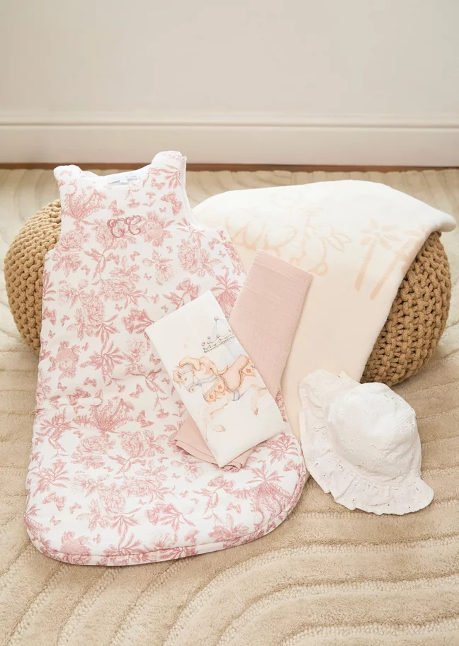 In the daytime, we love taking Milly out for a stroll, especially if the weather’s nice. And when the sun’s got its hat on, this sweet style by Sarah Louise keeps her face shaded. Another must-pack for our pram is NaturaPura’s blanket. It’s made from organic cotton, which is soft and breathable, but the cosy fleece texture means it’ll be great for winter walks too — versatility is key for me, and this ticks both boxes perfectly!"