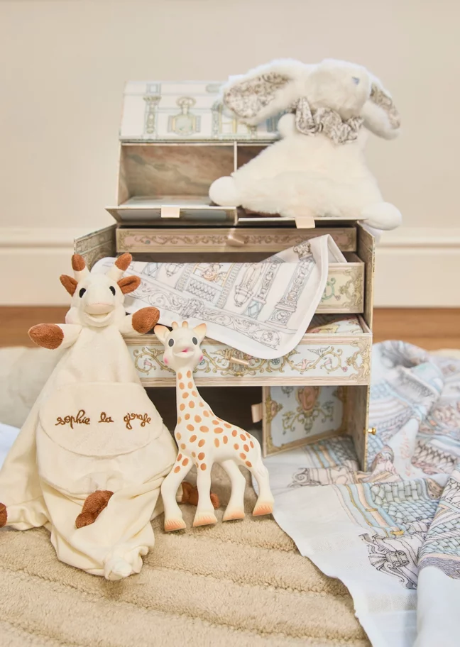 Working at Childrensalon means that I’m surrounded by beautiful baby products, so it’s hard to resist buying absolutely everything. One of my favourite designers at the moment is Atelier Choux. The swaddles are lightweight and soft, and the illustrations are simply stunning, plus the gift boxes are really rather special. I also couldn’t resist buying the Bonpoint bib set — practical and cute! — and Sophie la Girafe’s teething toy. Of course, I didn’t want to turn up to meet Felix without bringing something for Jasper too. It’s a big transition going from being an only child to having to share the attention with a new sibling, so I bought him a fluffy companion as a surprise, which was also a great distraction when Mum needed a little break. And the award for Best Auntie goes to . . . "