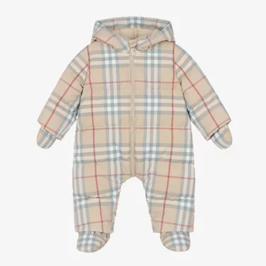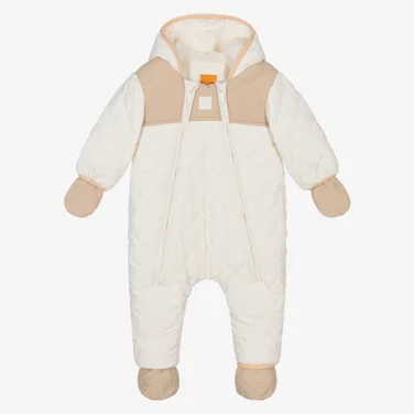 A baby snowsuit is, essentially, an all-in-one coat, designed to keep your baby toasty warm in the coldest conditions. These cosy designs are worn over their outfit as a final layer before heading outdoors and are softly padded with either natural down or synthetic insulation. Features also include enclosed feet, removable mittens, and hoods to keep the cold out where it belongs.