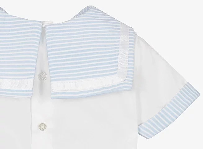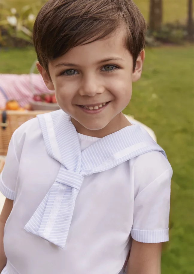 “The sailor look is quintessentially British, and we love paying homage to this classic style in our Beatrice & George collection. It gets the royal seal of approval too — princes George and Louis and their sister Princess Charlotte are often seen sporting traditional sailor dresses and suit sets.”