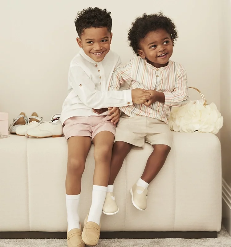 Met with a chorus of oohs and ahhs, a cute pageboy outfit is sure to get everyone in the mood for what’s to come during the wedding ceremony. For sunnier celebrations, we love a pastel-hued shorts suit in lightweight linen; it’ll keep little ones cooler throughout the day and allow for movement in the legs should they make full use of the dance floor later on. Alternatively, if the groomsmen’s theme is more classic, we have plenty of black, grey and navy-blue suit options that are equally as sweet. Just accessorise with a floral lapel pin to match the bridal flowers.