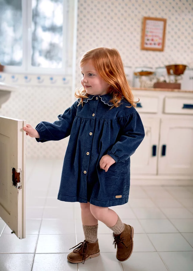 Nothing says autumn dressing quite like corduroy. Soft, warm and beautifully tactile, this fabric is perfect for layering up her look as the temperatures fall. Our collection has lots of corduroy dresses for girls that she'll wear time and time again through autumn and the months beyond, and there are so many colours and details to choose from. Add interest with sweet embroidered collars and pinafore styles layered over blouses or let the texture do the talking by keeping it simple.