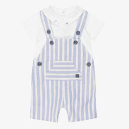 Baby Boys Blue & White Dungaree Shorts Set