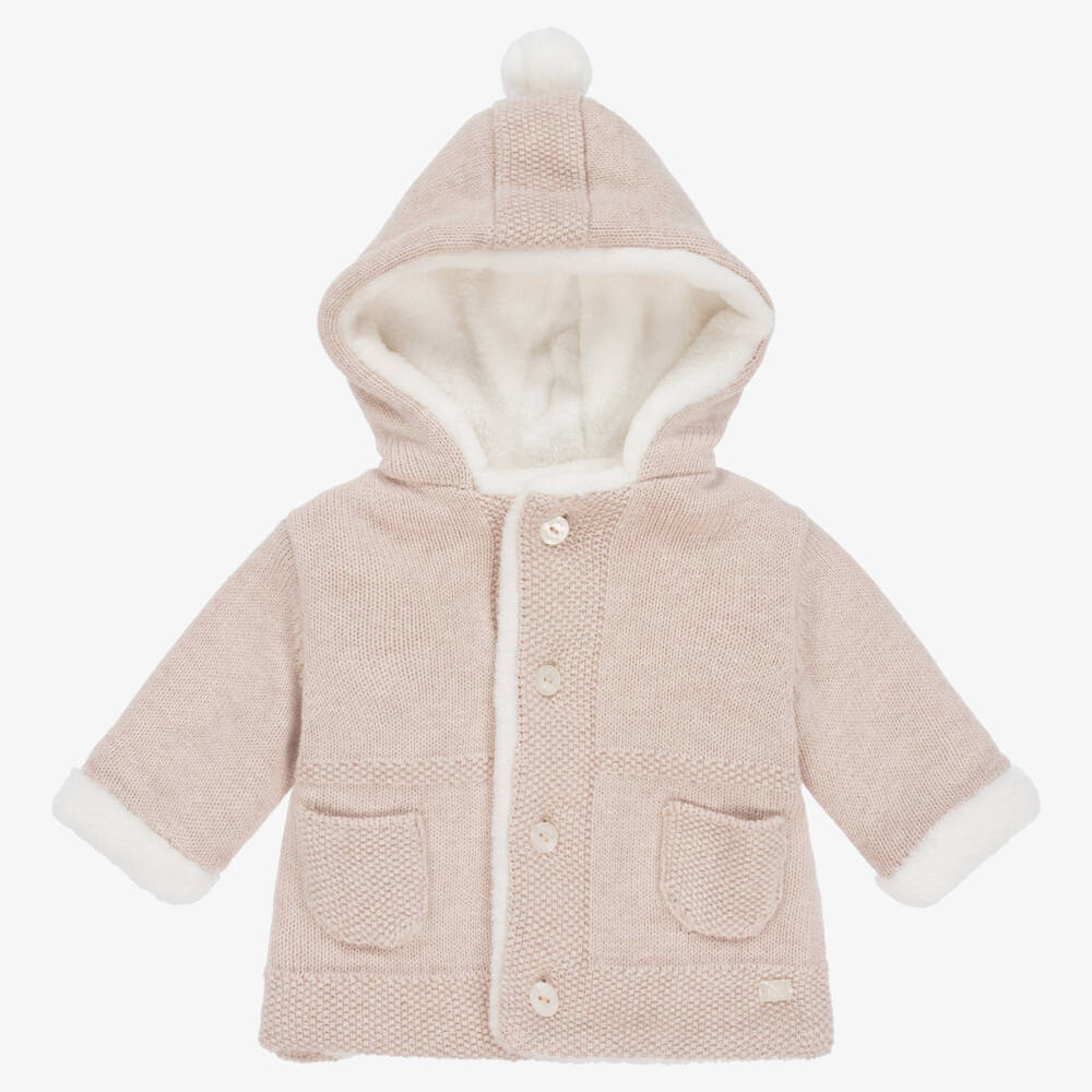 Beige Cotton Knit Baby Pram Coat