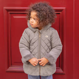 Elegant and stylish for girls, this beige and pink tweed coat is by French brand Tartine et Chocolat. It is made in a luxurious blend of wool, cotton and linen, with a contrasting ivory collar in soft sherpa fleece. Lined in silky satin for comfort, this smart coat fastens with fabric covered buttons down the front, and is trimmed with useful patch pockets.