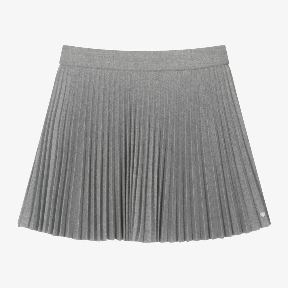 Pleated grey marl skirt for girls by classic French brand Tartine et Chocolat, made in a soft viscose blend. Fully lined with satin fabric, it has an adjustable waistband for a great fit. The skirt fastens with a button and concealed zip fastening on one side.