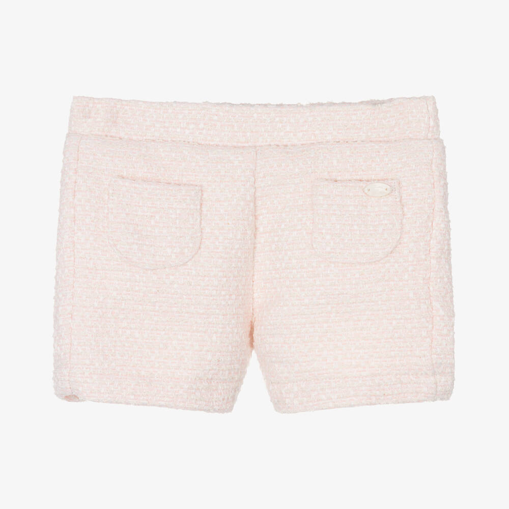 Pink cotton-blend shorts for little girls by Tartine et Chocolat, with a part-elasticated, adjustable waist for simple dressing. An elegant, timeless look, these smart shorts are made in intricate tweed with little patch pockets on the front. They have a comfortable cotton lining and a pearlescent logo charm detail.