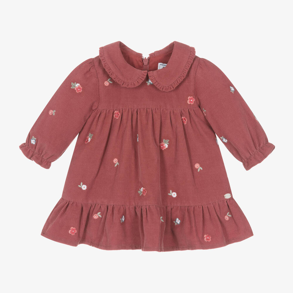 From French brand Tartine et Chocolate, this pink needlecord dress for younger girls is beautifully embroidered with flowers. Soft to touch, this charming style has a ruffle-trimmed collar and a deep frilled hem. The dress is comfortably lined in lightweight cotton fabric and fastens neatly with a concealed back zip.