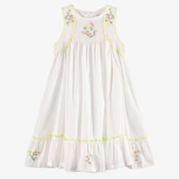 Girls White Floral Broderie Anglaise Dress