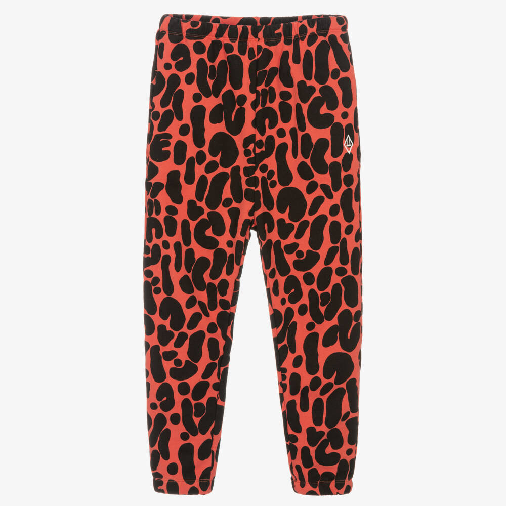 Casual joggers from The Animals Observatory for teen girls, with a red and black abstract animal print. Comfortable with tapered hareem style legs, they are made from soft cotton sweatshirt jersey with elasticated cuffs and waist. There is a contrasting white logo embroidery by one of the side seam pockets.