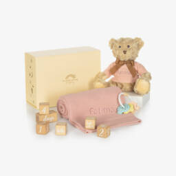- Set contains: teddy bear, blanket, rattle, 6 x milestone blocks, storage bag, gift box