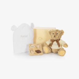 - Set contains: teddy bear, hooded towel, puzzle, gift box