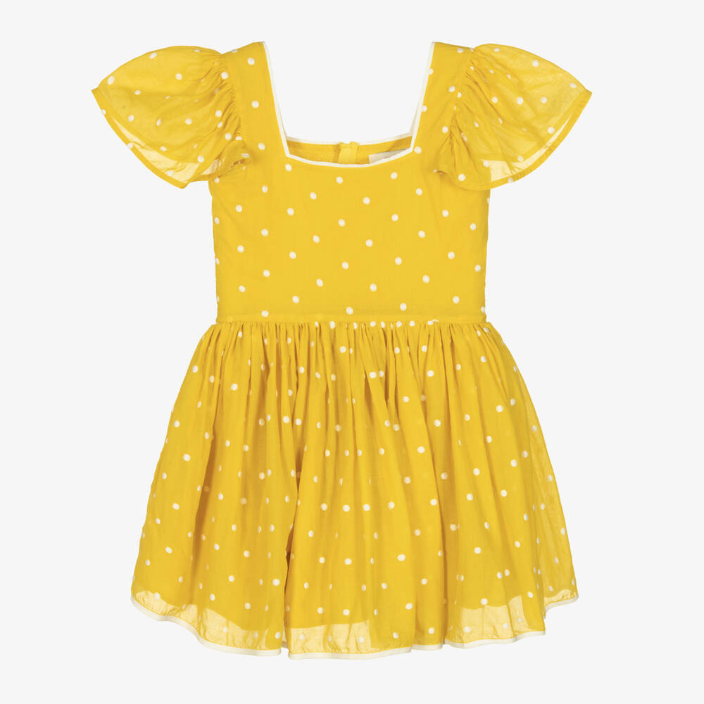 Teen Girls Yellow Cotton Polka Dot Dress
