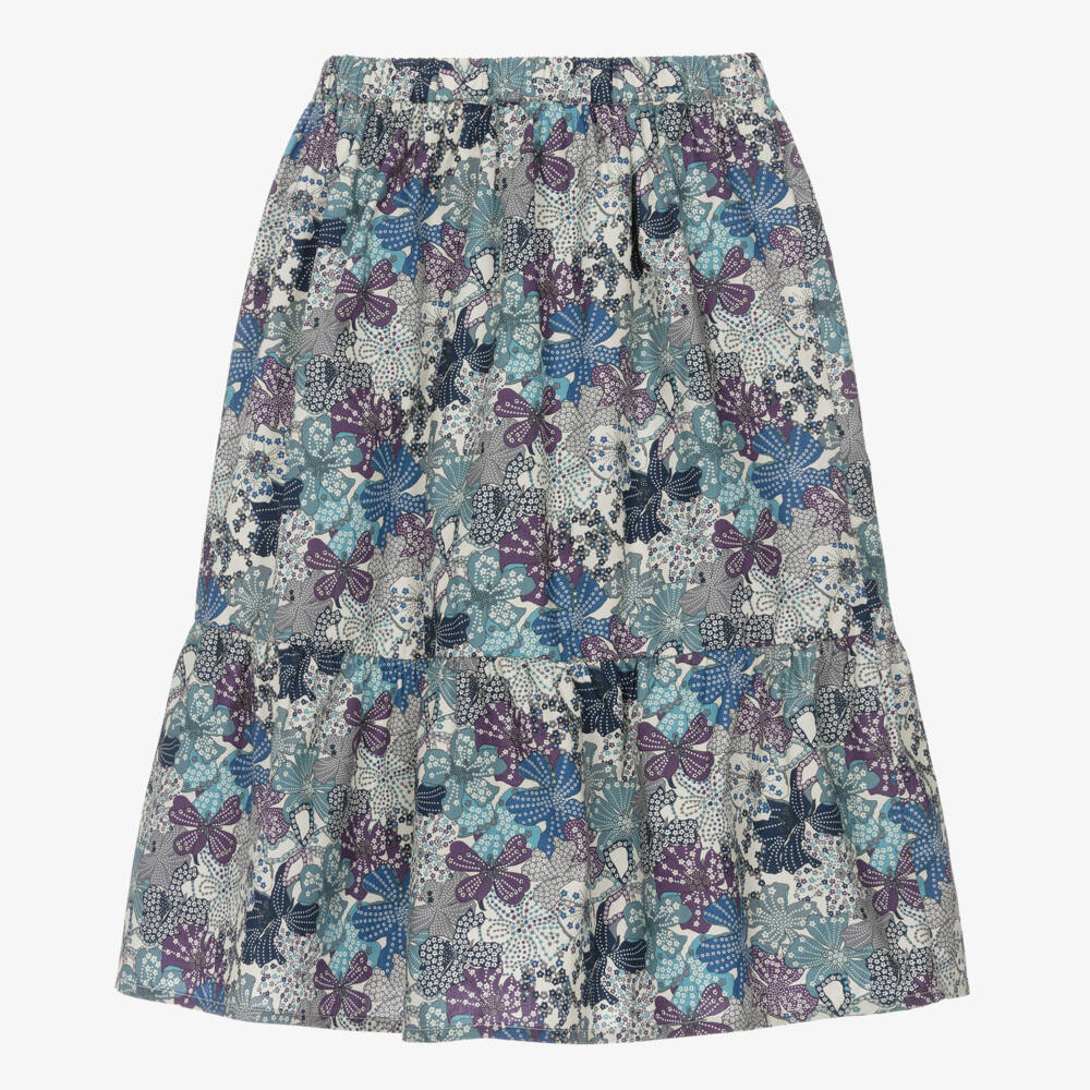 Beautiful cotton skirt for girls by The New Society, with a floral Liberty print in shades of blue and purple. Made in luxurious Tana Lawn, the skirt is lined in lightweight voile for comfort, and has an elasticated waist and a pretty tiered hem.