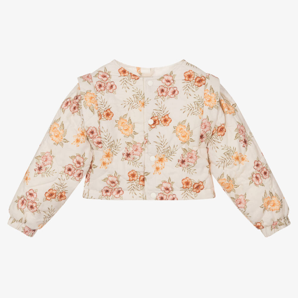 Girls Ivory Floral Quilted Jacket