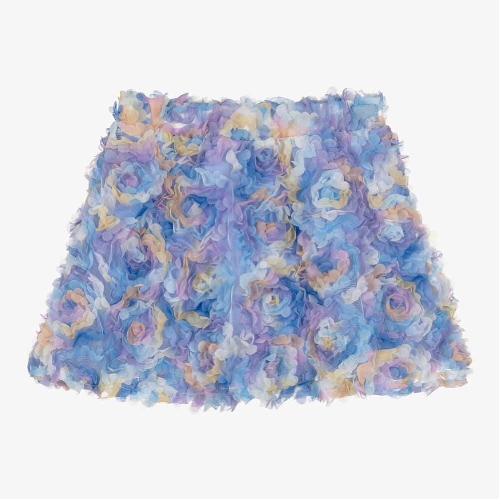 Beautiful blue tulle skirt for girls by The Tiny Universe, embellished with pastel-coloured three-dimensional flowers, for a fun, feminine look. Made from lightweight tulle, this skirt is lined in a silky, blue satin that feels soft against the skin. The waistband is lightly elasticated for a great fit, with a blue designer logo patch on one side for an added designer touch.