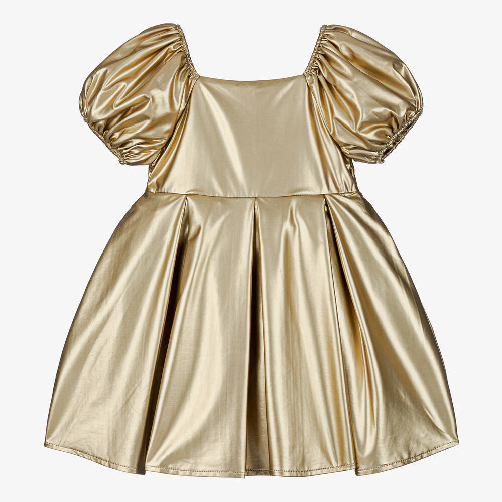 Girls Metallic Gold Satin Dress