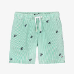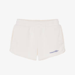 Casual and comfortable beige shorts for boys by Tommy Hilfiger, with tonal flag embroidery on one leg. Great for active days, they are made in soft, mid-weight cotton jersey with a drawstring elasticated waistband. There are slanted front pockets and a patch pocket on the back, embroidered with a small flag logo for a signature finish.