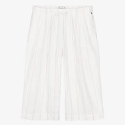 Beige cargo trousers for boys by Tommy Hilfiger, made in soft, slightly textured cotton. These casual trousers have an adjustable, semi-elasticated waistband for a great fit, slanted front pockets and two useful cargo pockets that fasten with poppers. There is a branded button and zip fastening, with a discreet logo flag on one side for a signature finish.
