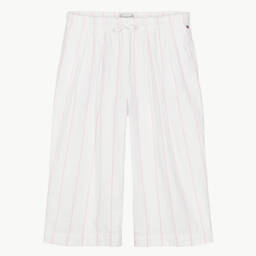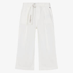 Beige chino trousers for boys by Tommy Hilfiger, ideal for smart-casual wear. Made from soft cotton twill, they feature an adjustable waistband for a comfortable fit, with a zip and button fastening. This classic style is complete with slanted front pockets and buttoned back pockets. The label's distinctive, embroidered tricolour detailing and flag logo add a subtle branded touch.