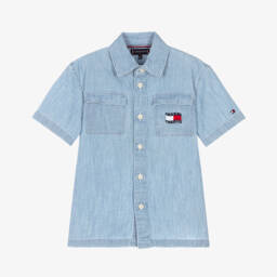 A light pink shirt for boys by Tommy Hilfiger, with the brand's iconic flag logo embroidery on the chest. Woven in soft Oxford cotton, this classic style has a smart button-down collar. Signature striped buttons accent the cuffs, while an embroidered trim along one side seam adds an extra designer detail.