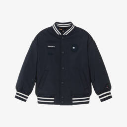 Lightweight navy blue jacket and gilet for boys by Tommy Hilfiger, with an embroidered white monotype logo. Featuring the iconic flag embroidery, both pieces can be worn separately or zipped together for an extra layer of warmth on cooler days. The coach jacket has a detachable hood, soft mesh lining and branded poppers. The hood and gilet are smooth on the outside and fleecy on the inside for a comfortable wear.