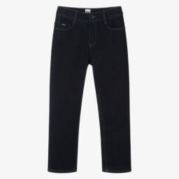 Navy blue trousers for boys by Tommy Hilfiger, made in soft, mid-weight piqué jersey. Both stylish and comfortable, they are designed in a straight leg fit with useful pockets and an adjustable waist. The brand's iconic flag logo is embroidered on the back for a signature finish.