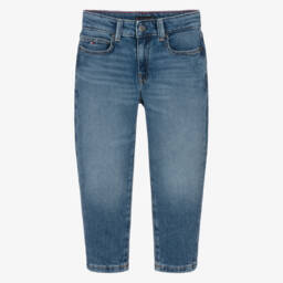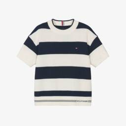 A navy blue polo shirt for boys by Tommy Hilfiger, made in soft cotton piqué. Cool and casual, it is styled with a ribbed collar and branded button fastenings and features signature logo detailing on the chest. A small flag logo is embroidered on one sleeve for an extra designer touch.
