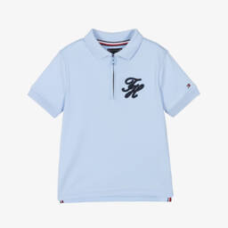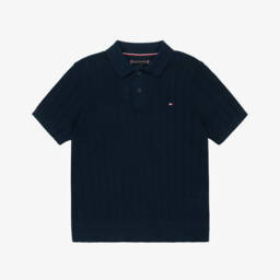 A navy blue polo shirt for boys by Tommy Hilfiger, made in soft cotton piqué. Cool and casual, it is styled with a ribbed collar and branded button fastenings and features signature logo detailing on the chest. A small flag logo is embroidered on one sleeve for an extra designer touch.
