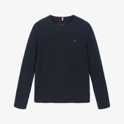 This navy blue sweater for boys by Tommy Hilfiger is a cosy addition to any wardrobe. Finely knitted in soft wool for warmth and comfort, it is styled with a crew neckline and ribbed trims. For instant designer appeal, the brand's iconic flag logo is embroidered on the chest, with signature striped detailing on the back of the neck.