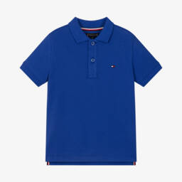 Boys red stripe rugby shirt by Tommy Hilfiger. This preppy style has a contrasting chambray collar and classic knit design. The iconic tricolour flag is embroidered on the chest for designer appeal.
