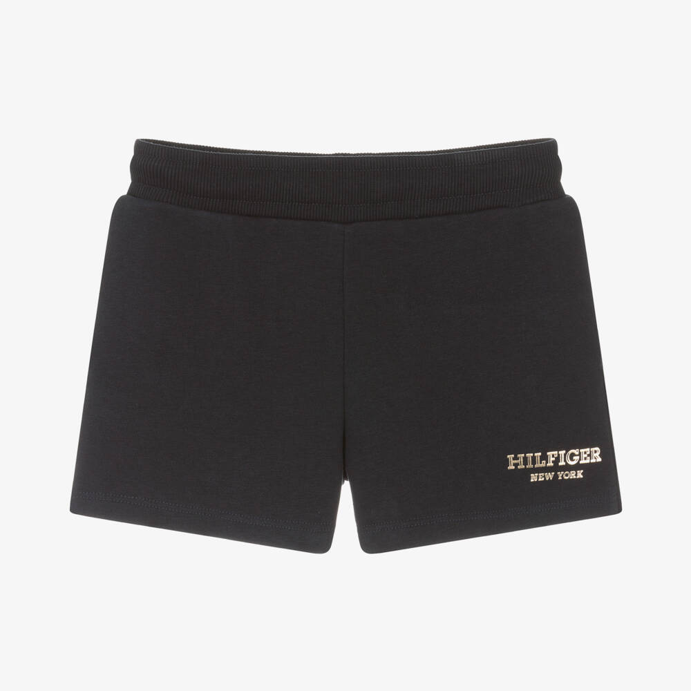 Navy blue shorts for girls by Tommy Hilfiger, made from soft and stretchy cotton jersey. They have discreet side seam pockets and an internal drawstring waist, for a comfortable fit. Super cool, there is a gold foil logo on one side for a branded finish.